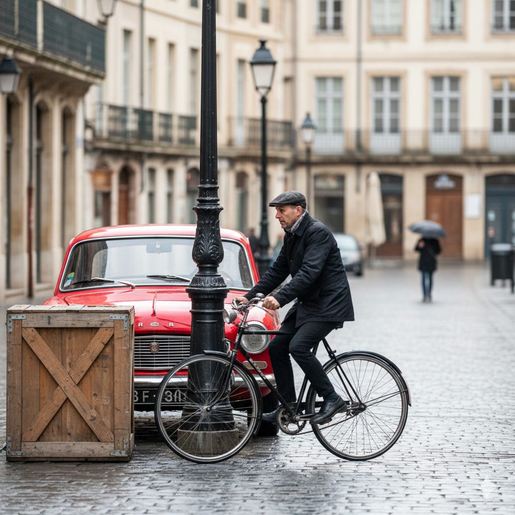 Consideremos una imagen con tres objetos: un auto parcialmente tapado por otro objeto, un peatón pequeño al fondo y una bicicleta que se cruza visualmente con el auto. Es un caso típico: objetos de distinto tamaño, parcialmente visibles y con regiones que se superponen.